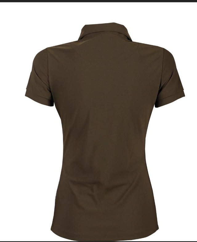 Poloshirt mit einer Biese an der Seitennaht, in die das Equestrian Society-Logo integriert ist.